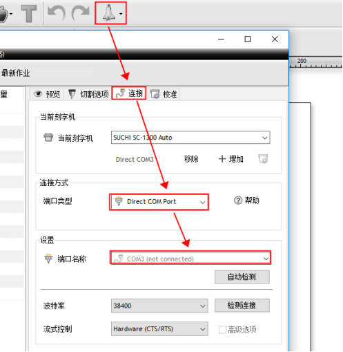 a.用数据线连接,把USB线和电脑接好后,开机,按下图打开切割后台进行设置.